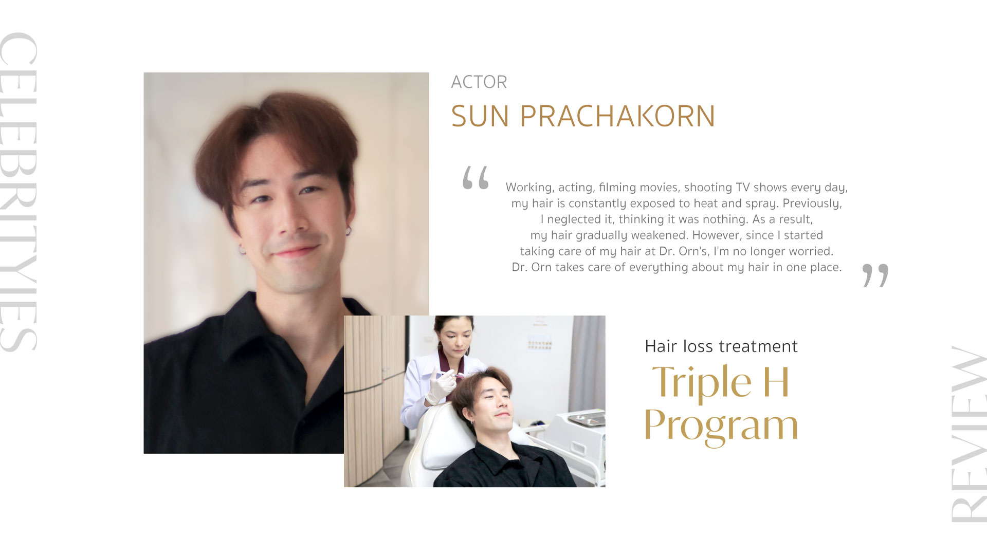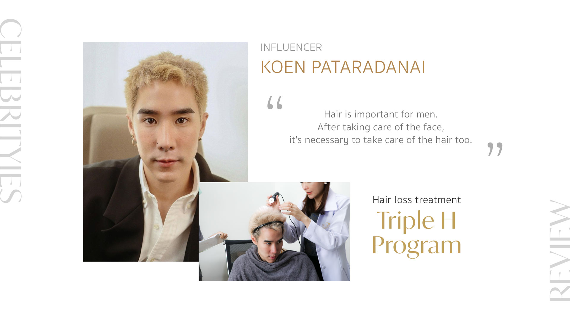 หากมองหาบริการ Hair Treatment เพื่อแก้ไขปัญหาผมอ่อนแอ ผมบาง ผมขาดหลุดร่วง ทางคลินิกเราขอแนะนำบริการหัตถการ Triple H Solution Program เลยค่ะ เพราะบริการนี้เป็นการเสริมความแข็งแรงของรากผม พร้อมฟื้นฟูหนังศีรษะให้กลับมาแข็งแรงมากยิ่งขึ้น ด้วย 3 ขั้นตอนหลัก ได้แก่ การสะกิดตัวยาด้วยวิตามินเข้มข้น การผลักวิตามินด้วยเครื่องคลื่นพลังงานไฟฟ้า และการฉายแสงกระตุ้นรากผม เหมาะสำหรับผู้ที่มีเส้นผมบาง ผมหลุดร่วง ในระดับปานกลาง อยากป้องกันไว้ก่อนผมร่วงหนัก