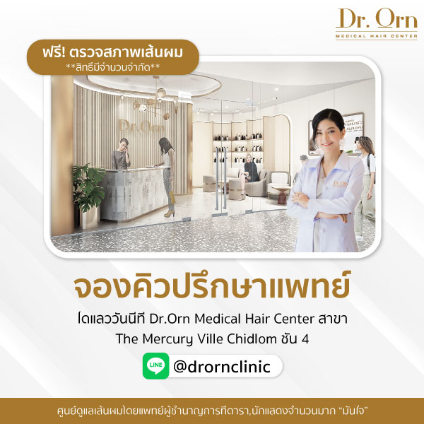 โปรโมชั่นแรงต้อนรับการเปิดสาขาThe Mercury Ville Chidlom ! Dr.Orn Medical Hair Center มอบสิทธิ์การตรวจสภาพเส้นผมให้ฟรีกับโปรแกรม Hair Check-Up Program ถึงสิ้นเดือนสิงหาคมนี้เท่านั้น ใครที่มีปัญหาผมร่วง ผมบาง ศีรษะล้าน ห้ามพลาด ทักจองคิวปรึกษาคุณหมอได้เลย