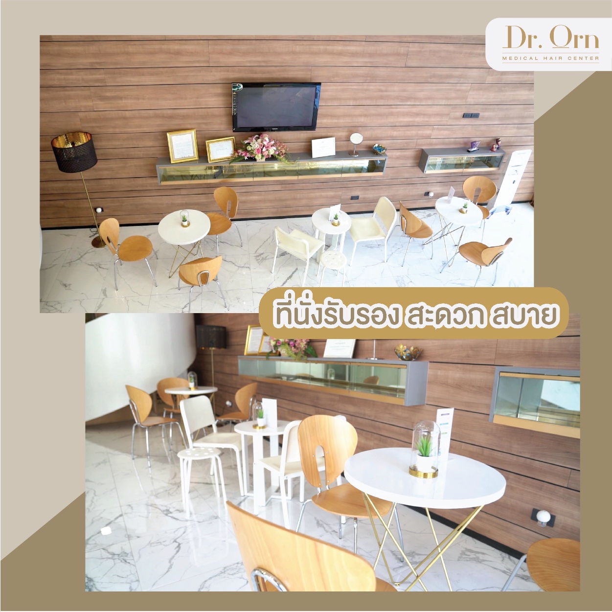 ภายในคลินิก มีการตกแต่งที่ทันสมัย สบายตา กว้างขวาง มีที่นั่งรับรองมากมาย เมื่อเข้ามาในคลินิค เราจะได้รับการต้อนรับจาก Hair Specialist ที่คอยให้คำปรึกษาและคำแนะนำได้เป็นอย่างดี เราสามารถคุยถึงปัญหาผมของเราได้ อุ่นใจเหมือนคุยกับคนในครอบครัวเลยแหละค่ะ