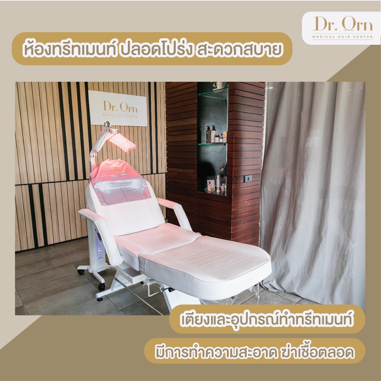 ภายในห้องผ่าตัดที่ Dr.Orn Medical Hair Center ก็มีความสะอาด ปลอดภัยตามหลักทางการแพทย์ในระดับมาตรฐานสากลด้วยนะ สามารถไว้วางใจ พร้อมนอนปลูกผมได้เลย