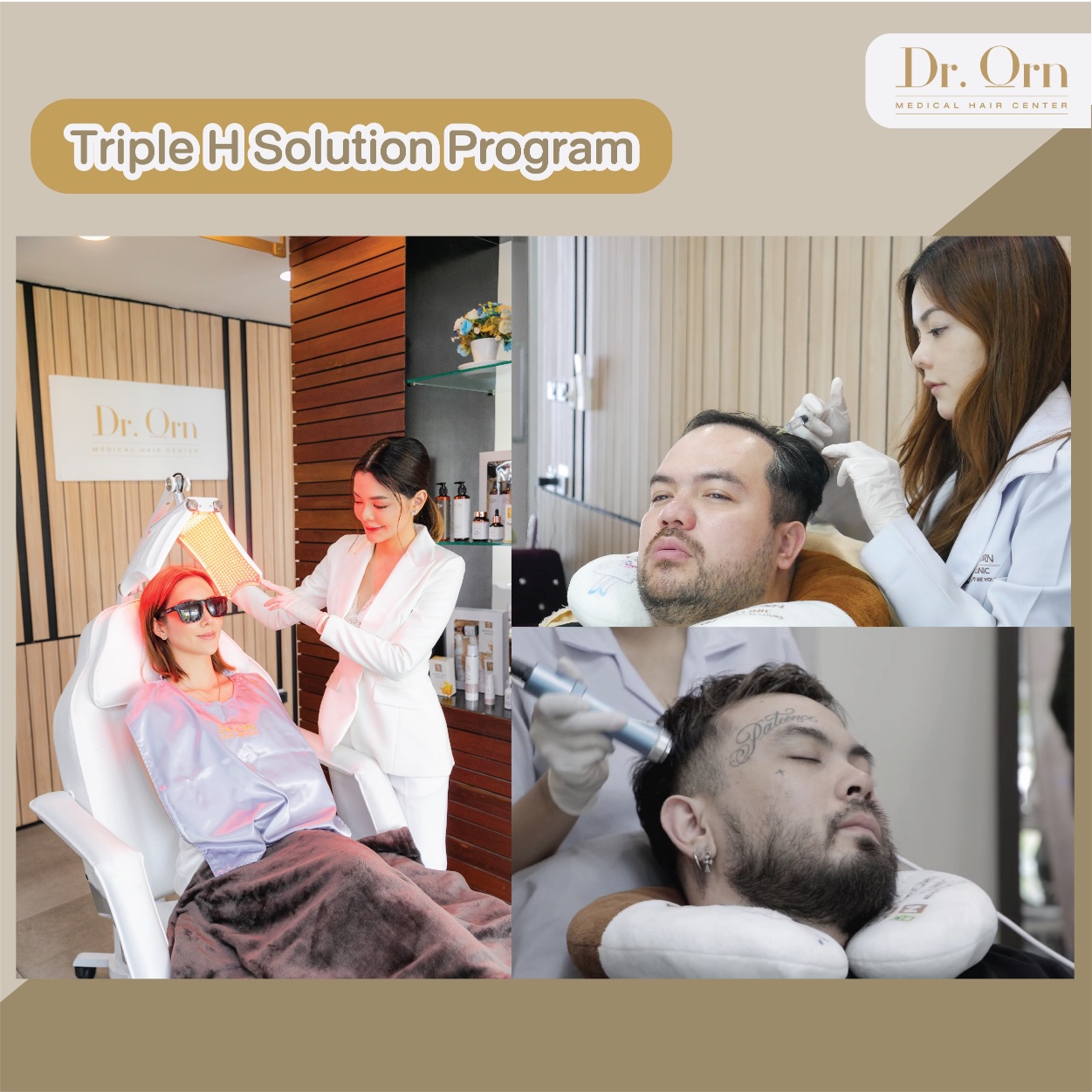 นอกจากบริการปลูกผมแล้ว Dr.Orn Medical Hair Center ยังมีการทำทรีทเม้นท์ผมเพื่อเป็นการบำรุงผมให้ถึงราก เรียกว่า Triple H Solution Program โปรแกรมนี้จะช่วยลดการขาดหลุดร่วงของเส้นผม อีกทั้งยังช่วยสร้างความแข็งแรงให้กับผมได้อีกด้วย