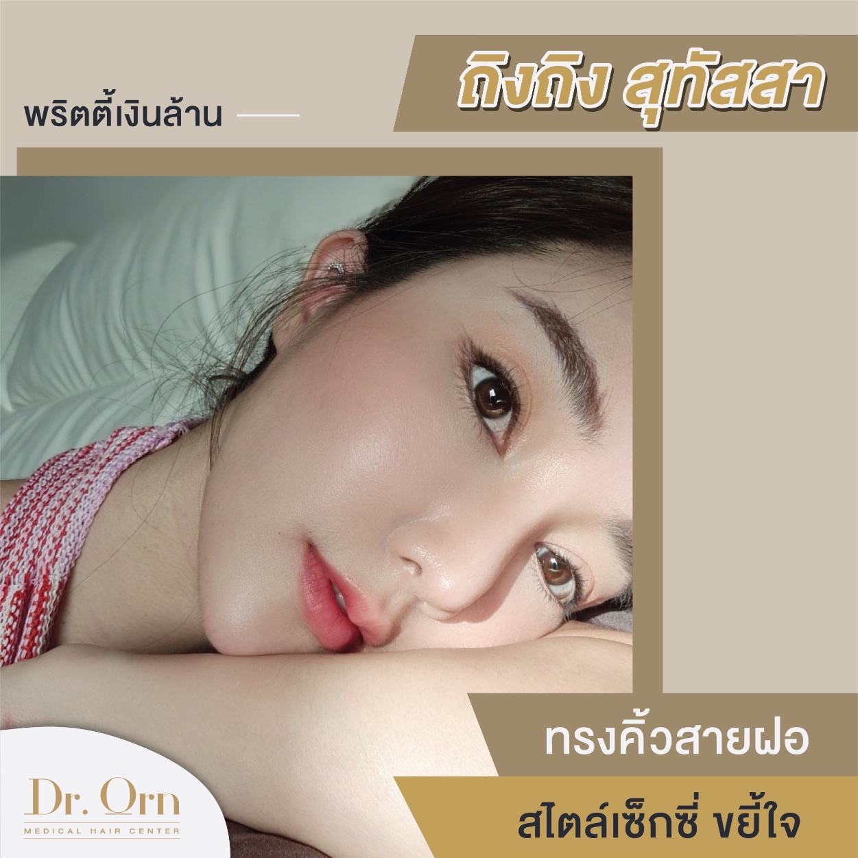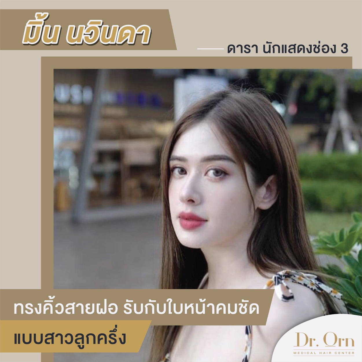 การมีทรงคิ้วสวยถือเป็นความปรารถนาของผู้หญิงหลายๆคน ในปัจจุบันจึงมีทรงคิ้วยอดฮิตเกิดขึ้นหลากหลายแบบ ซึ่งหนึ่งในนั้นคือ คิ้วทรงสายฝอ เป็นคิ้วที่มีลักษณะเส้นคม ชัด สาวๆที่มีทรงคิ้วลักษณะนี้ จะมีใบหน้าที่คม สวย มีมิติ จึงถือเป็นทรงคิ้วที่สาวๆส่วนใหญ่โปรดปรานกันอย่างมาก แต่ก็ไม่ใช่ทุกคนที่จะมีทรงคิ้วลักษณะนี้ได้ หากไม่ดูแลและบำรุงให้ดีอยู่สม่ำเสมอ วันนี้ Dr.Orn เลยรวบรวมทรงคิ้วสายฝอของดารา นักแสดงและเซเลบริตี้ชื่อดัง ที่ไว้วางใจให้ Dr.Orn medical hair center เป็นคนดูแลคิ้วให้พวกเขา จะสวยและปังขนาดไหน ไปดูกันเลย