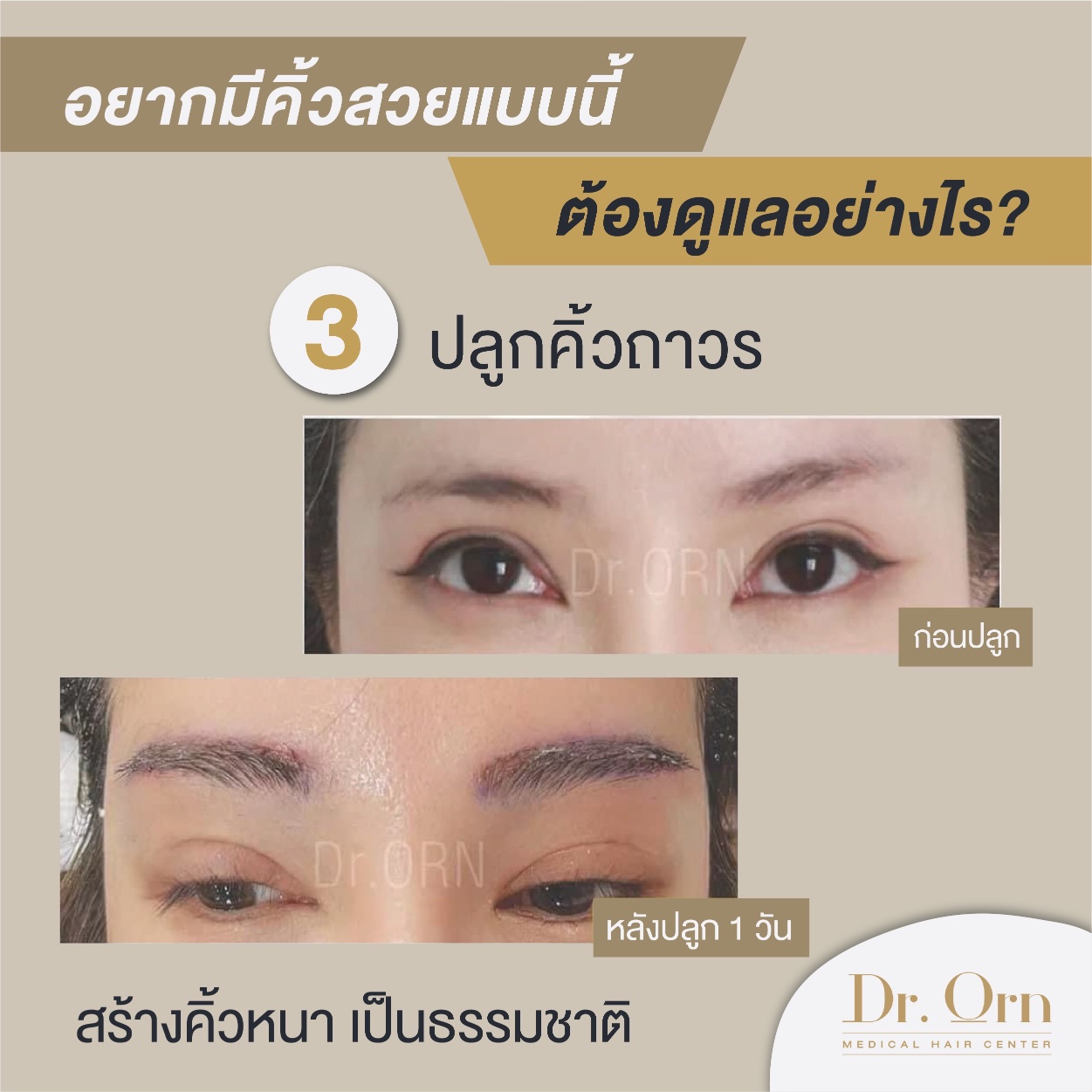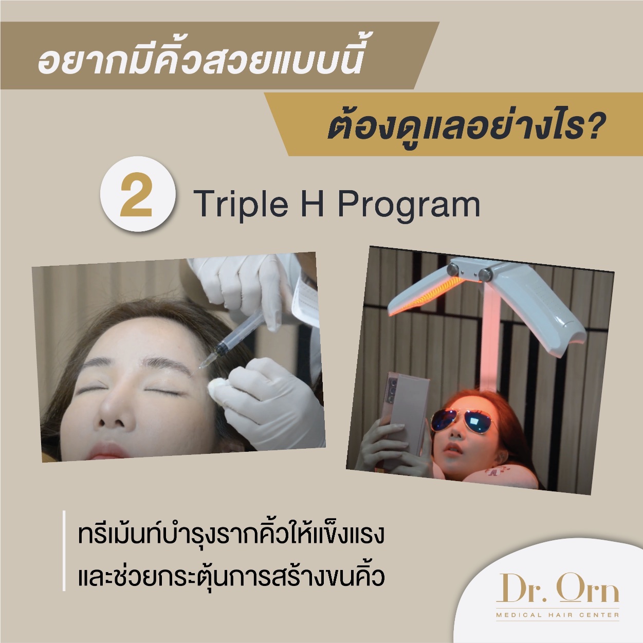โปรแกรมทรีเม้นท์ของ Dr.Orn ที่ช่วยบำรุงถึงรากคิ้วให้แข็งแรง และยังช่วยกระตุ้นการสร้างคิ้ว ให้คิ้วมีความหนาและสุขภาพดีอีกด้วย