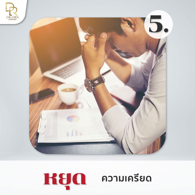 5. ความเครียด มีส่วนทำให้ผมร่วงจนกลายเป็นคนผมร่วง ผมบาง เพราะการเพิ่มของระดับฮอร์โมนคอร์ติซอลซึ่งเป็นฮอร์โมนความเครียดในร่างกายมีผลทำให้เส้นผมที่หนังศีรษะเริ่มหลุดร่วงเร็วกว่าวัยอันควร