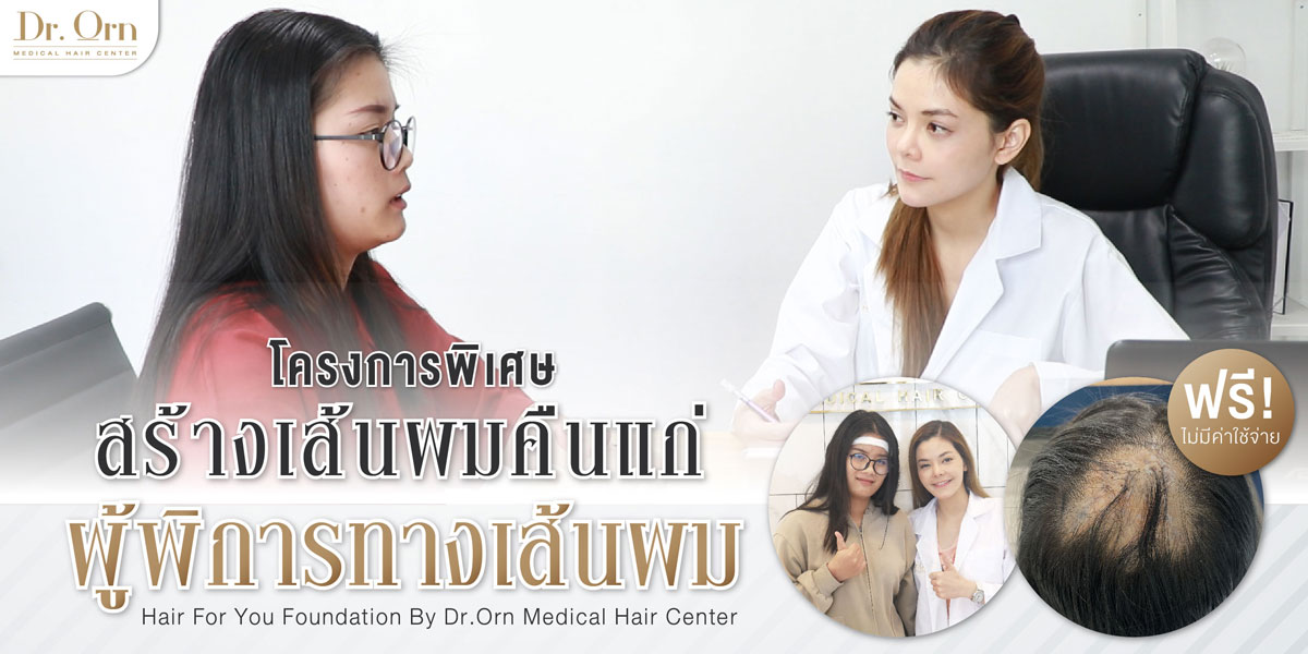 "Hair For You" สร้างเส้นผมคืนแก่ผู้พิการทางเส้นผมโดย Dr.Orn Medical Hair Center ตลอดระยะเวลากว่า 9 ปี Dr.Orn Medical Hair Center เป็นคลินิกปลูกผมที่ให้บริการด้านการดูแลเส้นผมครบวงจร นอกจากที่จะให้การบริการด้านเส้นผมแล้ว เรายังมุ่งมั่นที่จะตอบแทนสิ่งดีๆคืนสู่สังคมเพื่อเป็นการตอบแทนทุกท่านที่ไว้วางใจ Dr.Orn Medical Hair Center ให้ได้ดูแลเส้นผมของทุกท่านตลอดมา