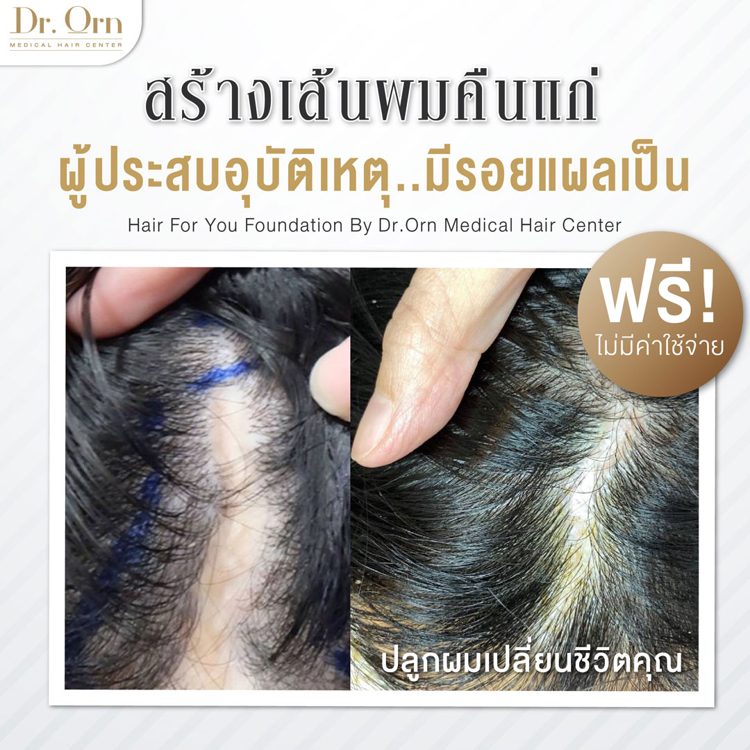 ทาง Dr.Orn Medical Hair Center ได้เห็นความเปลี่ยนแปลงและรับรู้ถึงความรู้สึกขอบคุณจากการได้รักษาผู้พิการทางเส้นผม จึงตั้งใจและอยากมอบสิ่งดีๆกลับคืนสู่สังคมหรือผู้ที่ไม่มีโอกาสที่จะได้เข้ารับการรักษาด้านเส้นผม ให้ได้เข้ารับการปลูกผมถาวร กับทาง Dr.Orn Medical Hair Center โดยไม่เสียค่าใช้จ่าย