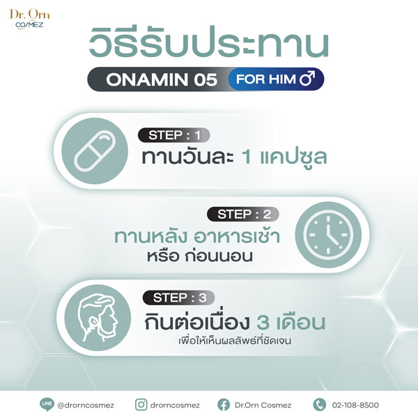 Dr.Orn Cosmez ONAMIN 05 For Him วิตามินลดผมร่วง เพิ่มผมหนา สำหรับคุณผู้ชาย 30 เม็ด