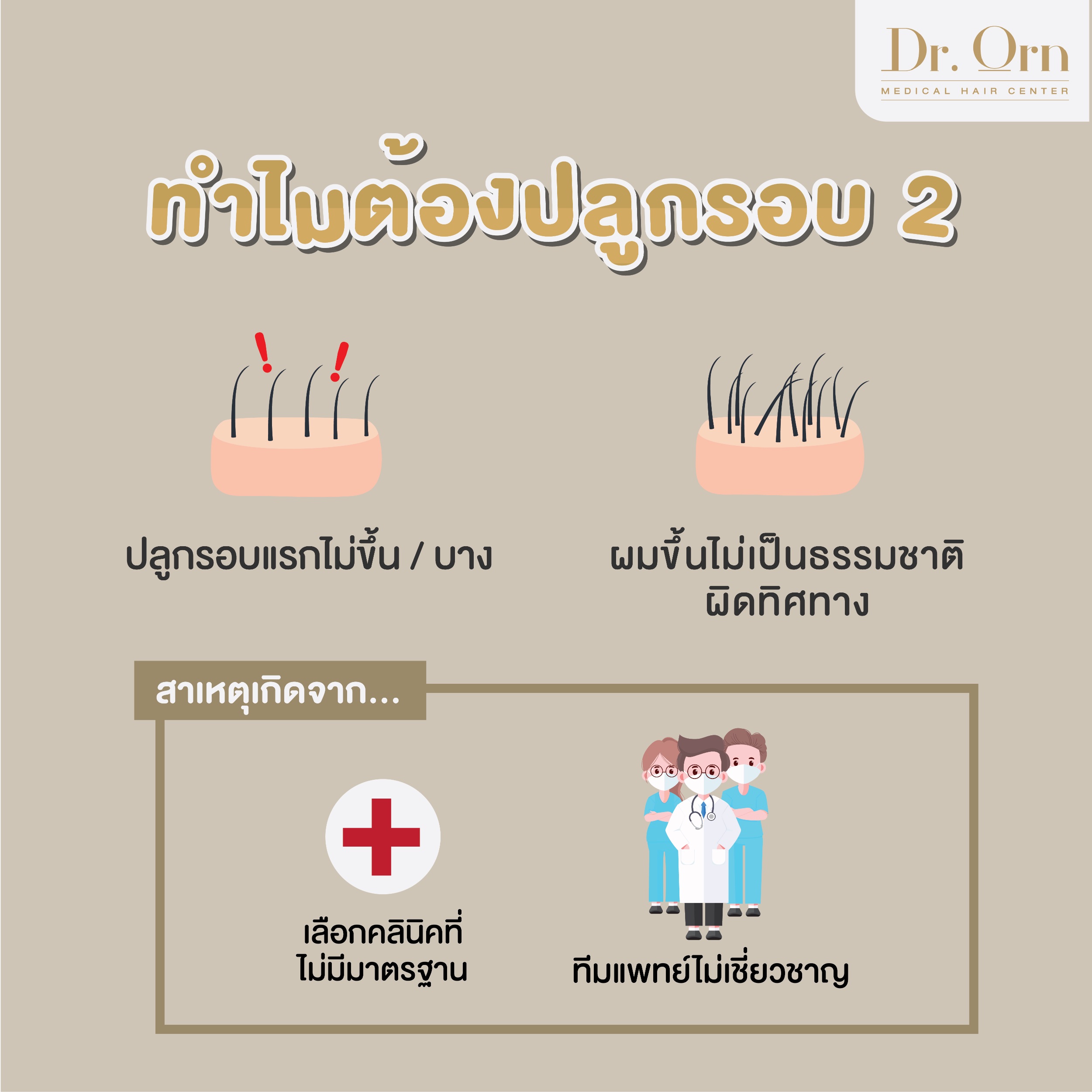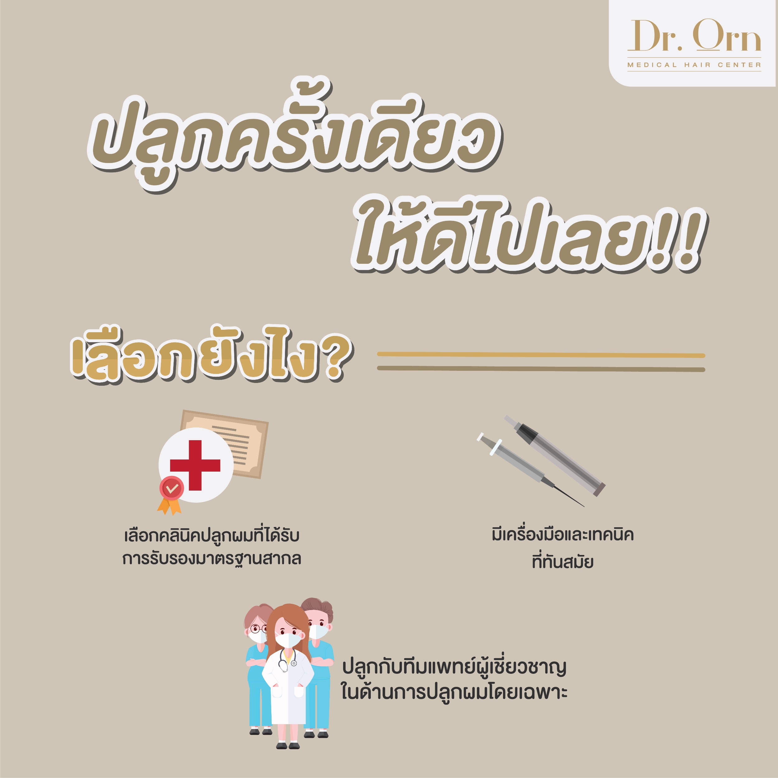 อย่างที่ Dr.Orn Medical Hair Center เราคือสถาบันดูแลเส้นผมครบวงจร ที่มีแพทย์ผู้เชี่ยวชาญด้านเส้นผมโดยเฉพาะคอยดูแลทุกท่าน และแพทย์ของเรายังได้รับการรับรองจากสถาบันด้านการปลูกผมถาวรโลกอีกด้วย มาปลูกผมที่ Dr.Orn Medical Hair Center ครั้งเดียว สวยครบจบ
