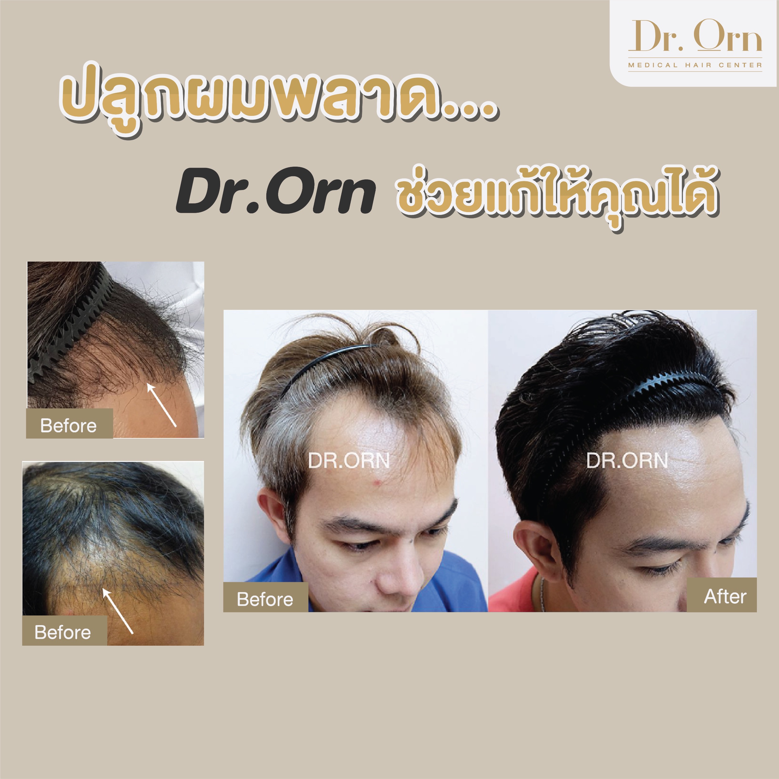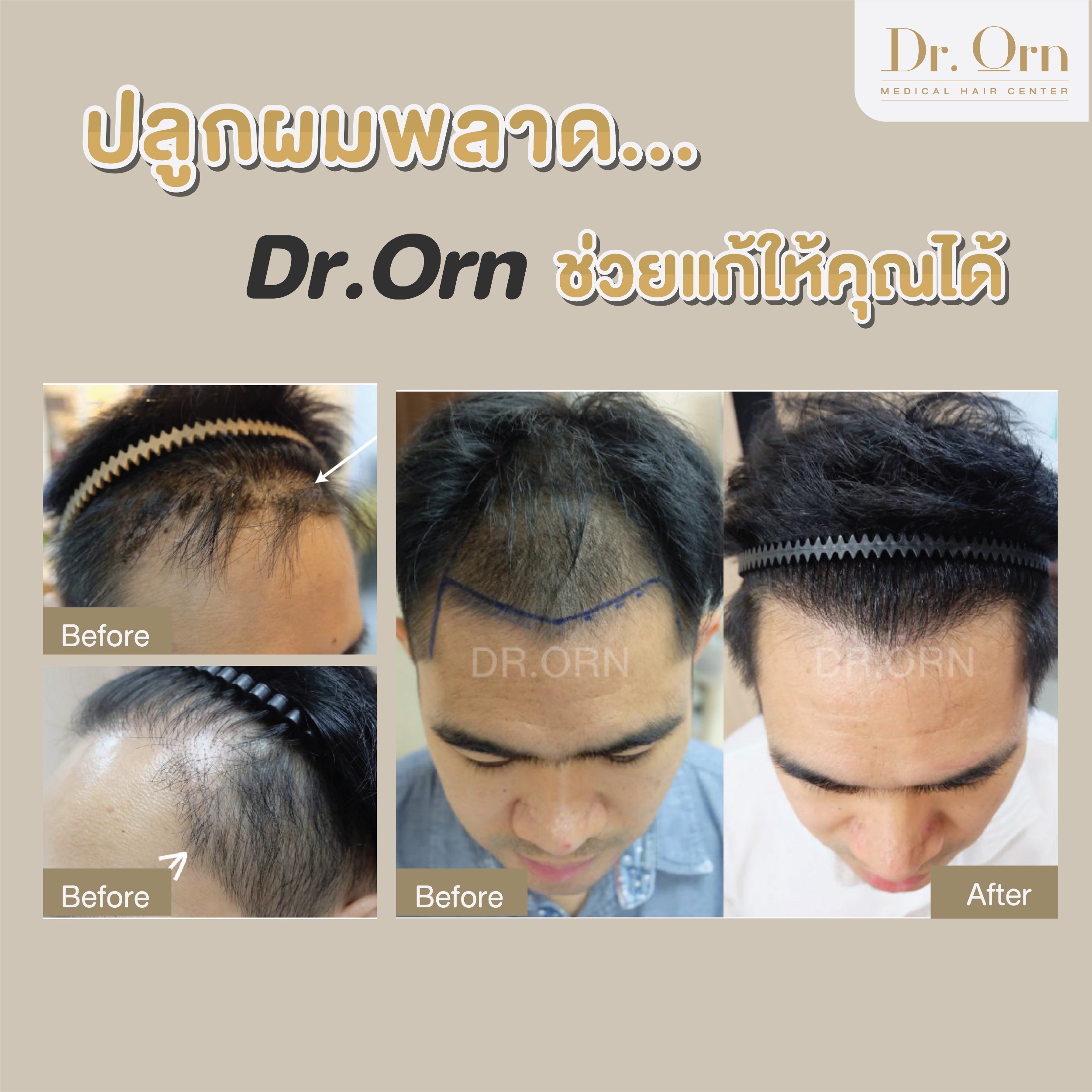 และถ้าหากคุณเคยปลูกผมมาแล้วแต่ต้องการแก้ไขเพิ่มเติม อยากจะมาปลูกผมรอบ 2 ที่ Dr.Orn Medical Hair Center เราก็สามารถดูแลพร้อมแก้ไขให้ได้ เพราะเราจะคัดรากผมที่แข็งแรงที่สุดนำมาปลูก และใช้เทคนิคการวางแนวเส้นผมที่ทำให้ผมดูเป็นธรรมชาติ เหมือนไม่เคยผ่านการปลูกมาก่อน มั่นใจได้เลยว่าปลูกผมรอบ 2 กับ Dr.Orn Medical Hair Center จะไม่มีคำว่าผิดหวังแน่นอนค่ะ