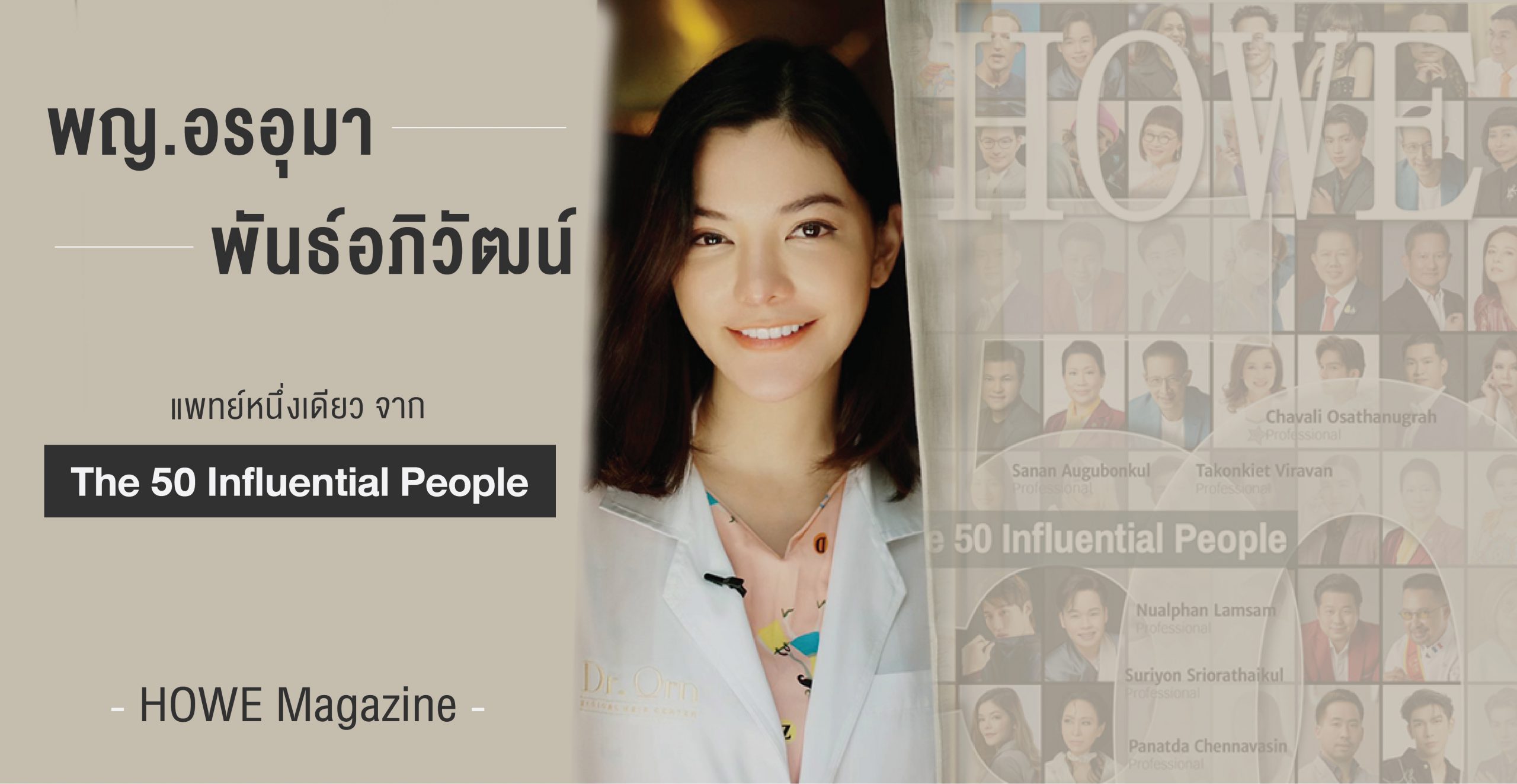 พญ.อรอุมา พันธ์อภิวัฒน์ ผู้บริหาร และผู้ก่อตั้ง Dr.Orn Medical Hair Center สถานบันดูแลเส้นผมครบวงจร 1 ใน 50 ผู้ทรงอิทธิพลแห่งโซเชียลมีเดียที่มีชื่อเสียง นักธุรกิจ นักบริหาร ที่ประสบความสำเร็จหลากหลายด้าน จากนิตยสาร ฮาว (Howe Magazine) ฉบับที่ 102