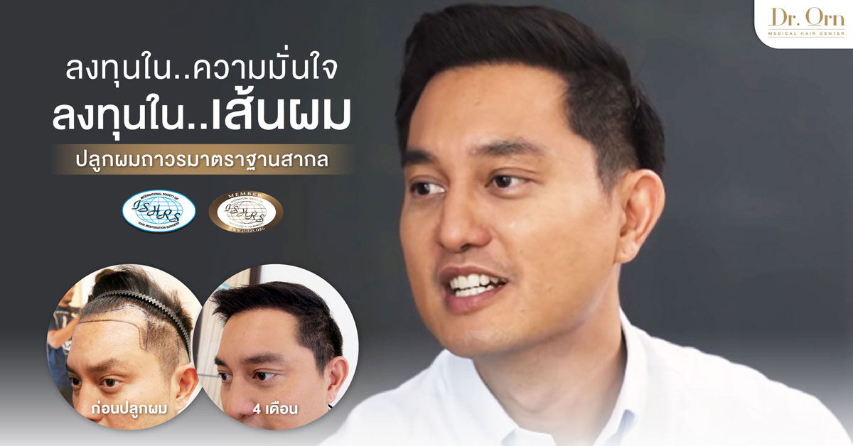 หลังจากลองใช้ยาปลูกผม เซรั่มปลูกผมและสารพัดผลิตภัณฑ์บำรุงเส้นผมแล้ว มาถึงจุดหนึ่งเราก็รู้สึกว่าเราต้องจัดการปัญหาเส้นผมนี้แบบถาวรและเป็นจังหวะที่ผมเริ่มหาข้อมูลเริ่มถามเพื่อน พี่ น้อง ในวงการธุรกิจและก็มีหลายคนที่เริ่มพูดถึง “หมออร” พูดถึงความเนี๊ยบในการปลูกผม ผลลัพธ์หลังการปลูกผมถาวร ผมเจอหลายคนปลูกผมกับหมออรมาแล้ว 6เดือนผมขึ้นแน่นมากและที่สำคัญคือดูเป็นธรรมชาติมาก ถ้าเขาไม่บอกว่าเคยไปปลูกผมถาวรมาผมก็จะไม่รู้เลยว่า คนคนนี้เคยไปปลูกผมถาวรมา