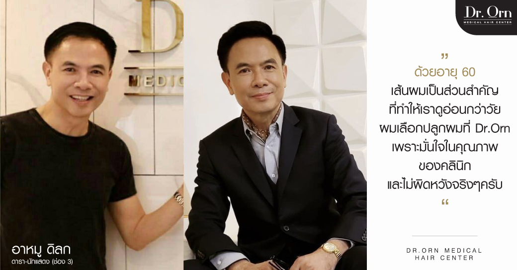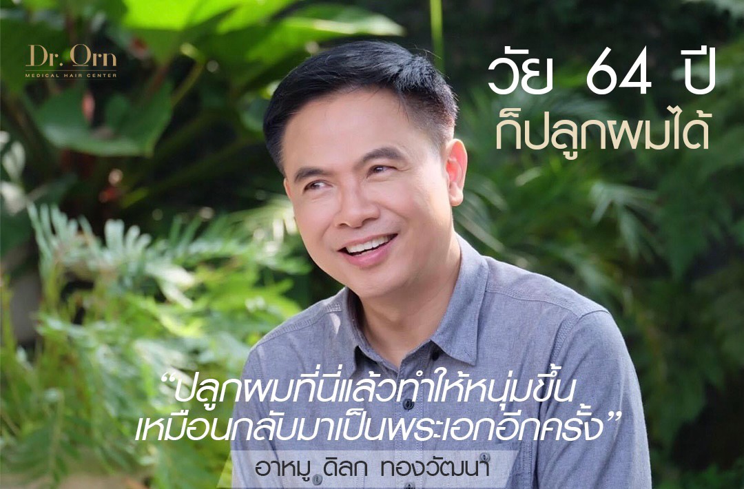 เป็นที่รู้จักกันดีกับ “อาหมู ดิลก ทองวัฒนา” ดารานักแสดงชื่อดัง ที่ตัดสินใจเข้ารับการปลูกผมในวัย 64 ปี ที่ Dr.Orn Medical Hair Center ผลลัพธ์หลังทำเป็นอย่างไรบ้าง และอะไรที่ทำให้อาหมูตัดสินใจมาเลือกดูแลเส้นผมที่นี่ วันนี้เรามีบทสัมภาษณ์อาหมูมาฝากกันค่ะ