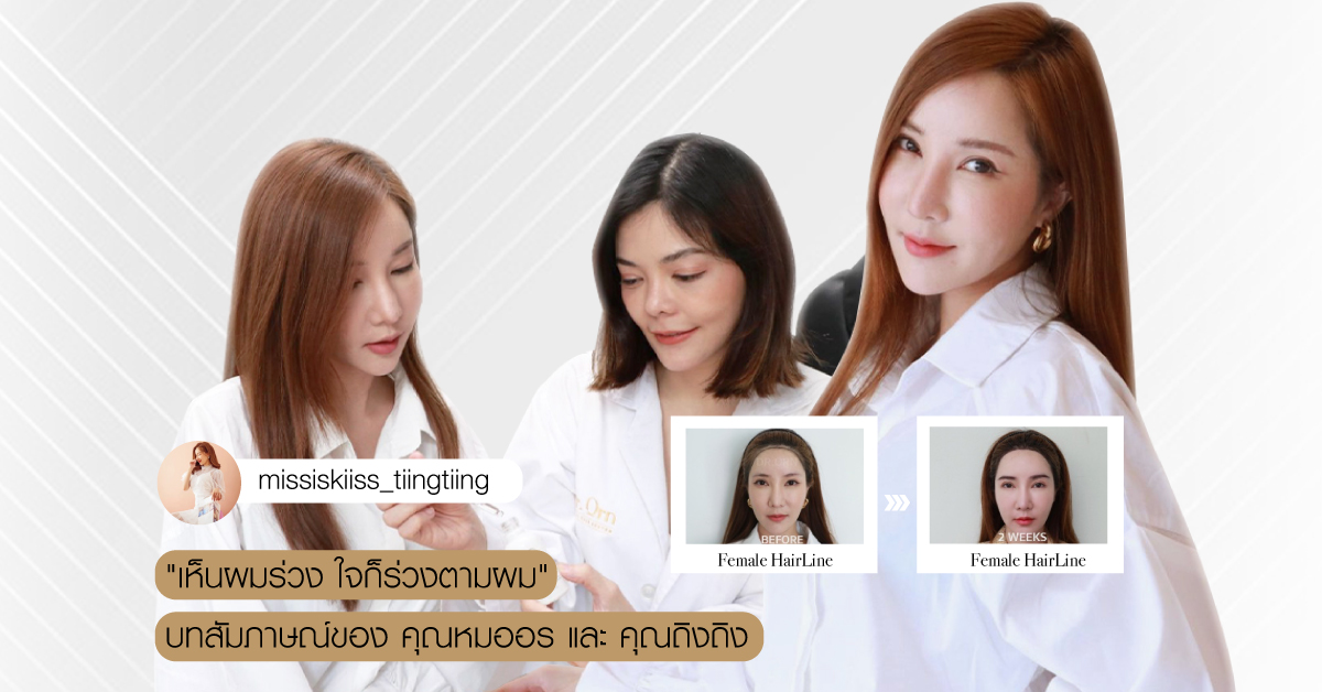 เรื่องผมสําคัญมาก ถิงถิงมีปัญหาหน้าผากกว้างแต่เกิด อีกทั้งยังพบปัญหาผมร่วง ผมบาง มันก็ดูมีอายุแล้ว ถิงถิงลองมาหลายวิธี แต่เป็นวิธีแก้ปัญหาที่ปลายเหตุ เช่น ติดแฮร์พีช วิก แล้วรู้สึกผมมีปัญหามากขึ้นมันถ่วงหัว ผมตรงนั้นแทบไม่มีเพราะมันถ่วงเกินไป เกิดความอับ เชื้อราได้อีกด้วย หลังได้พบกับหมออร ก็ได้ประเมินว่าอะไรที่เป็นสาเหตุจริงๆ อย่างของถิงถิงก็มีการออกแบบการรักษาทางการปลูกผมและดูแล บำรุงอย่างต่อเนื่องควบคู่ไปด้วย